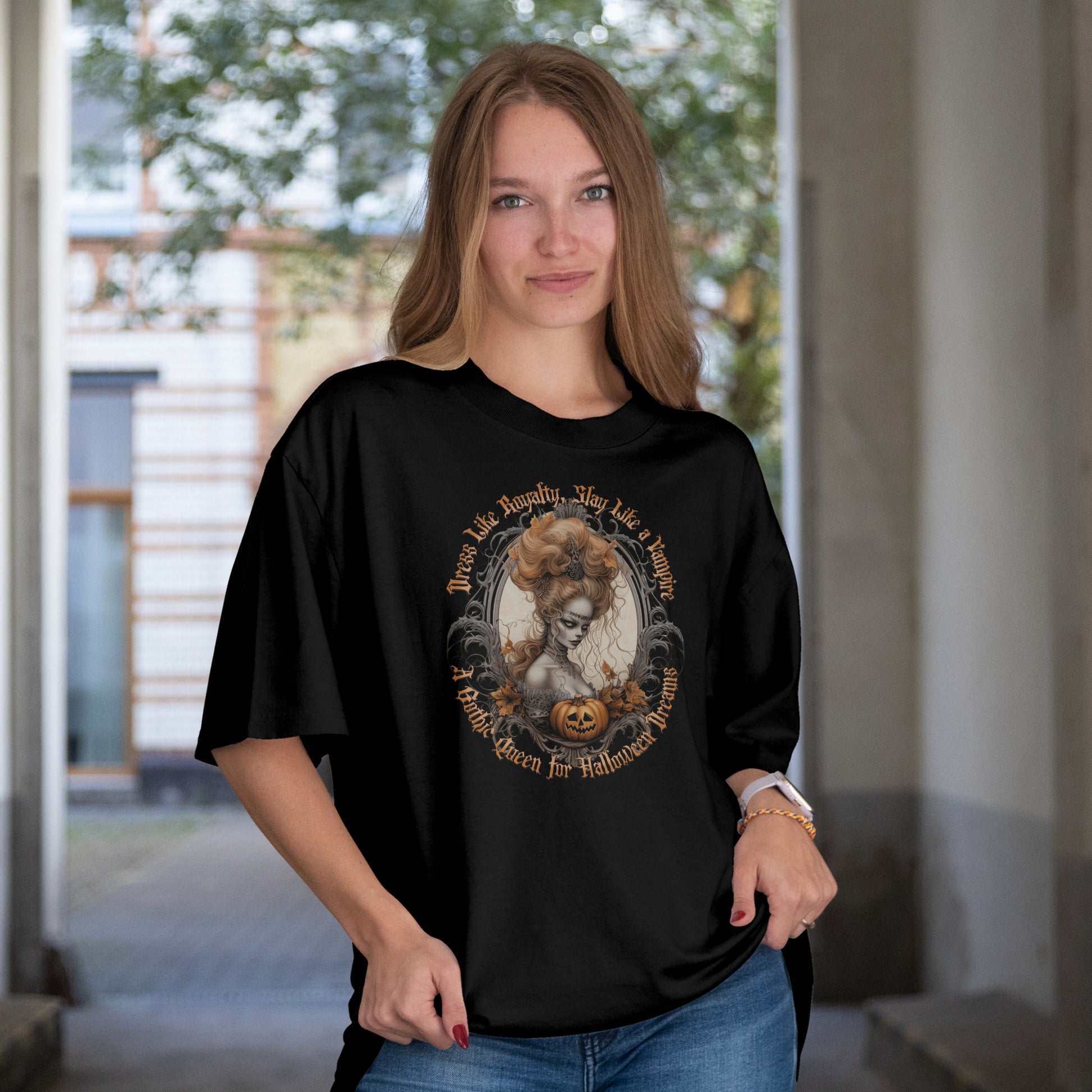 Whether you're hosting a haunted gathering or just showing off your Halloween spirit, this t-shirt combines comfort and charm to make you feel like royalty all season long.